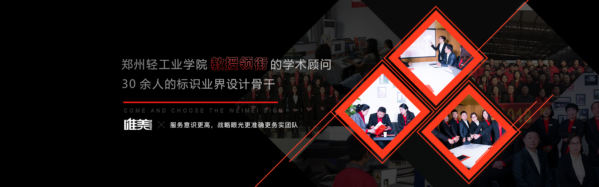 鄭州唯美標識設計制作有限公司是一家集標識系統開發(fā)、設計、制作、安裝、售后服務于一體的專業(yè)化標識公司。 13年專注標識行業(yè)定制服務,已成為地產住宅、商業(yè)廣場 、商辦公務、醫(yī)院系統、學校文化、工業(yè)園區(qū)、旅游景區(qū)、酒店餐飲、銀行金融等多個領域的提供標識系統解決方案公司。